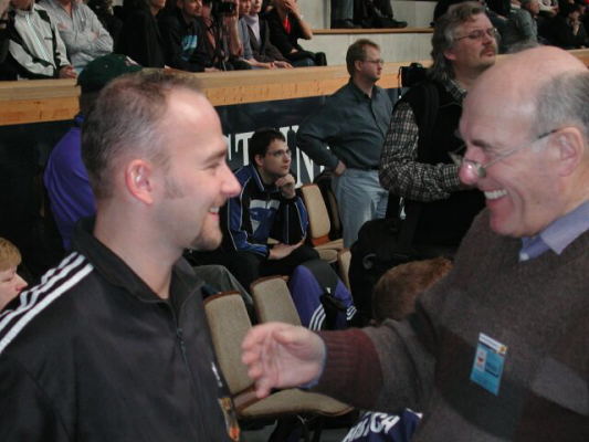 Gut gelaunt: Joachim Vogl und Gustav Bärlin (vom DWJ) beim Bundesliga-Finale 2002.