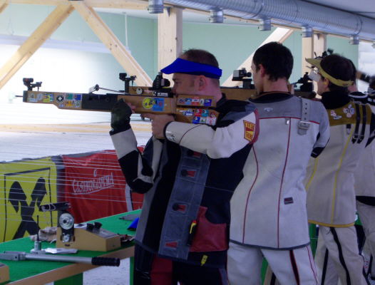 Joachim Vogl erzielt beim IVC-Euroliga-Finale 2007 in Innsbruck mit der 10-Meter-Armbrust 593 Ringe (99/99/98/99/100/98) und gewinnt damit sowohl in der Einzel-, als auch in der Mannschaftswertung souverän. Bild: Peggy Vogl |