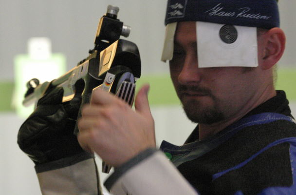 Joachim Vogl schießt sich auf der Deutschen Meisterschaft 2004 in der Disziplin Luftgewehr mit 594 Ringen (98/100/99/99/100/98) ins Finale. Hier erzielt er 101,8 Ringe und belegt damit den 4. Platz. Bild: Mike Hecker