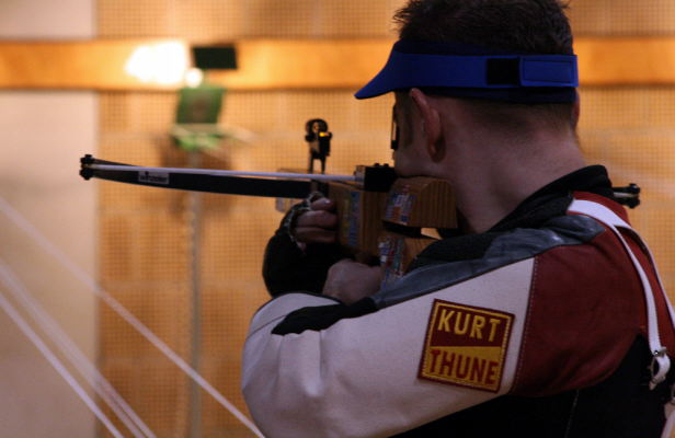 ![]() 16. März 2008: Joachim Vogl gewinnt in Frankfurt/Schwanheim mit 591 Ringen, 594 Ringen und 589 Ringen die DSB-Sichtung Armbrust 10 m – diesmal mit einem enormen Vorsprung von 13 Ringen. Bild: Norbert Ettner |