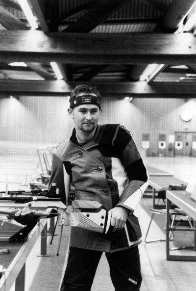 Ein Foto von Joachim Vogl, das Landestrainer Mario Gonsierowski während des Trainings in Hochbrück aufgenommen und in seinem Buch "Trainingshilfen für das Gewehrschießen" veröffentlicht hat.